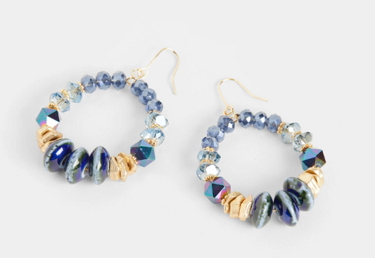 Mixed Metal Double Hoop w/ Turquoise Earrings