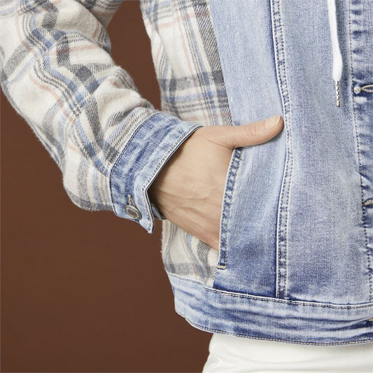OMG Oversized Denim Jacket with Flannel