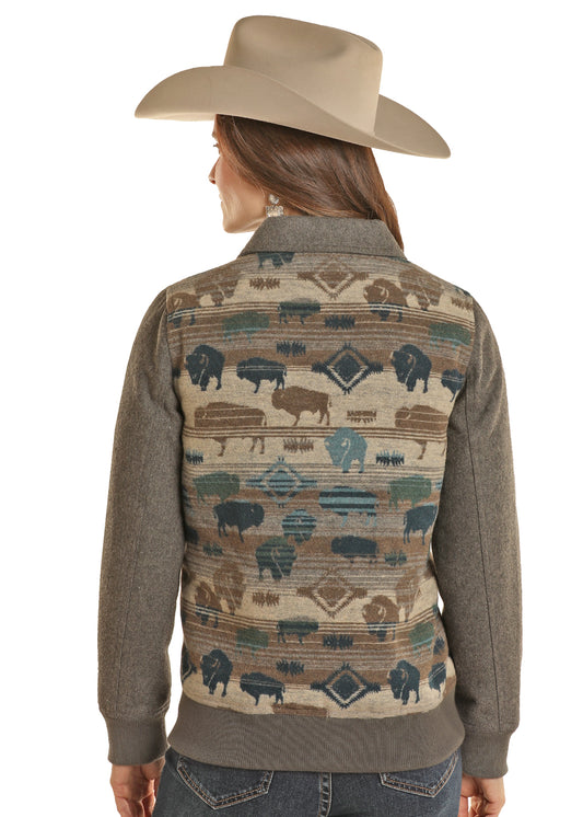 Rock & Roll Denim Womens Buffalo Jacquard Wool Bomber Jacket