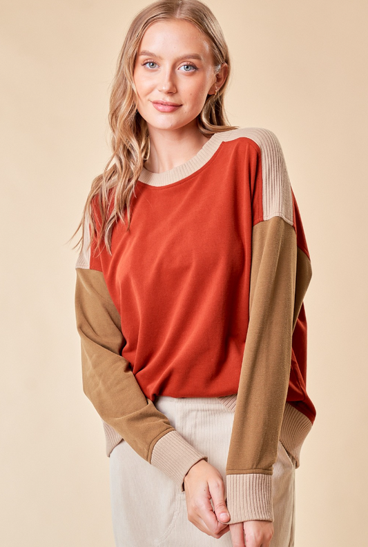 OVERSIZED COLOR BLOCK ELASTIC HEM FLEECE HOODIE