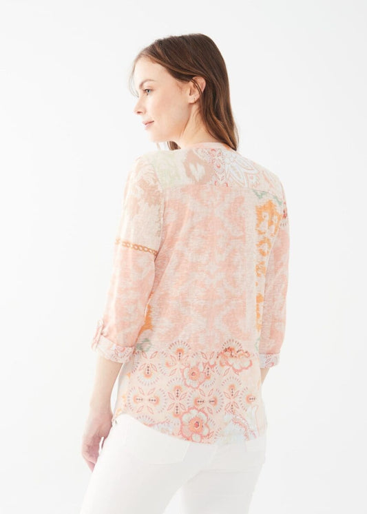 3/4 SLEEVE MIXED PRINT TOP by TRIBAL