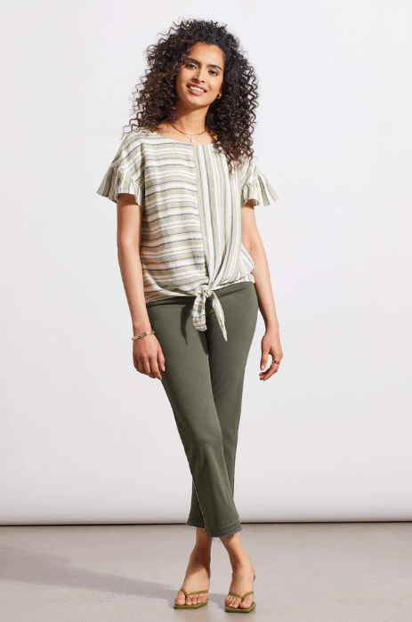 TIE-FRONT BLOUSE WITH FRILLED SLEEVE