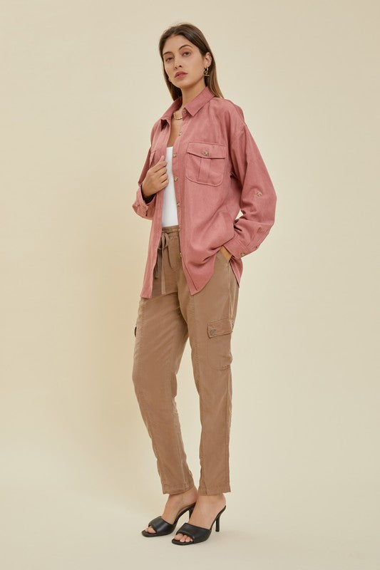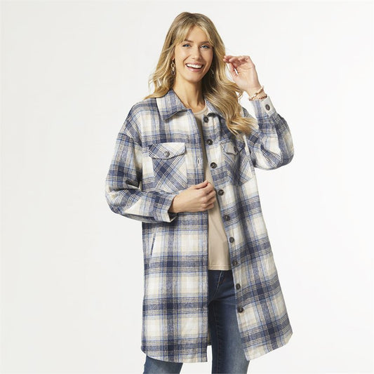 PATCHWORK SHACKET WITH CONTRAST BUTTONS