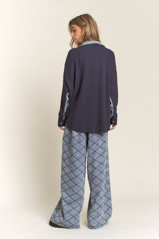 OVERSIZED COLOR BLOCK ELASTIC HEM FLEECE HOODIE