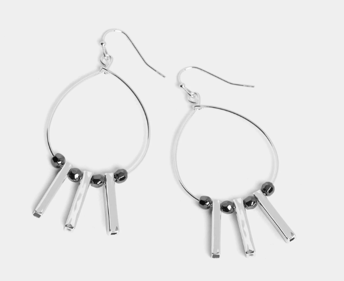 Oval Mixed Metal Beaded Hoop Earring